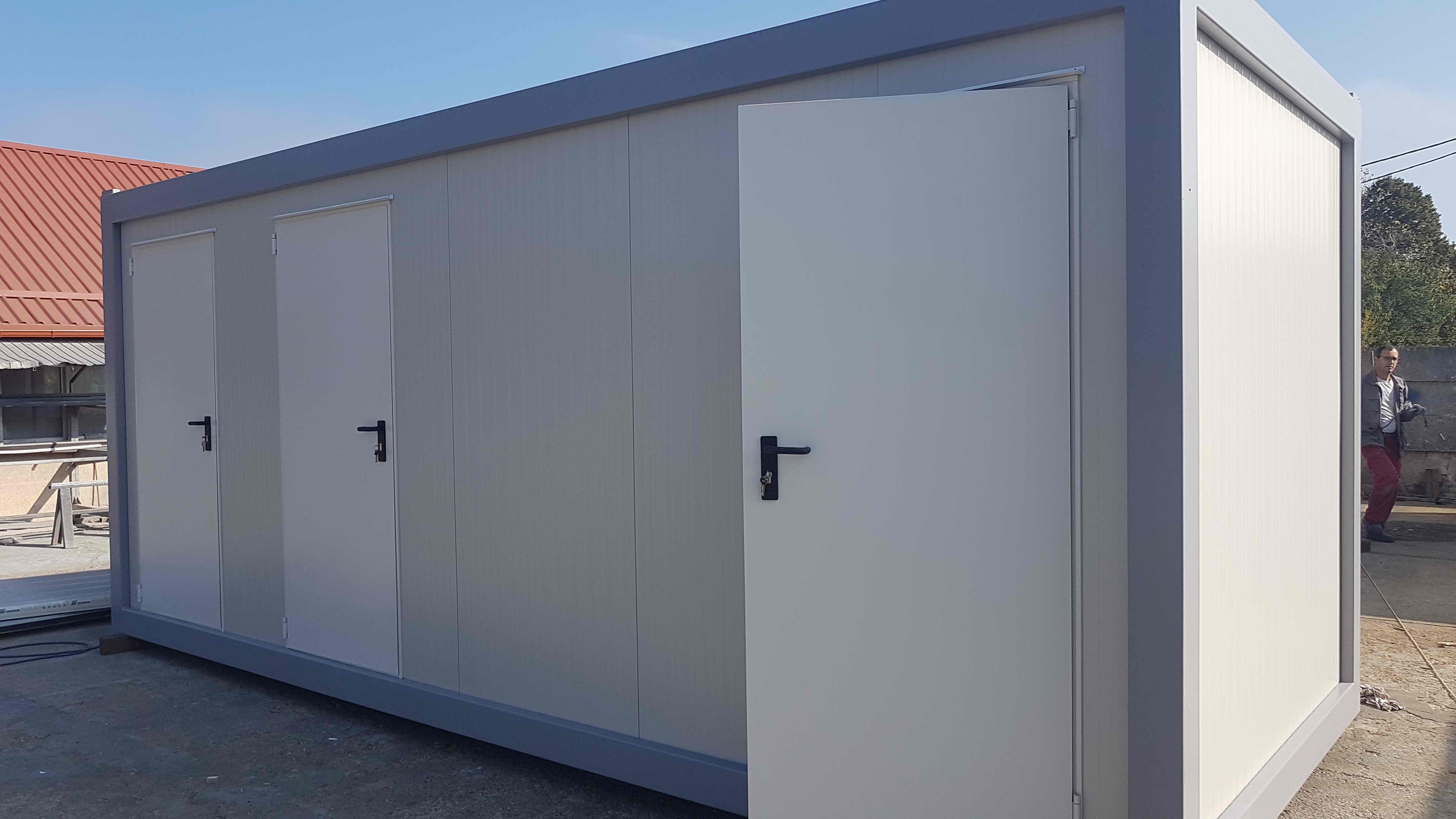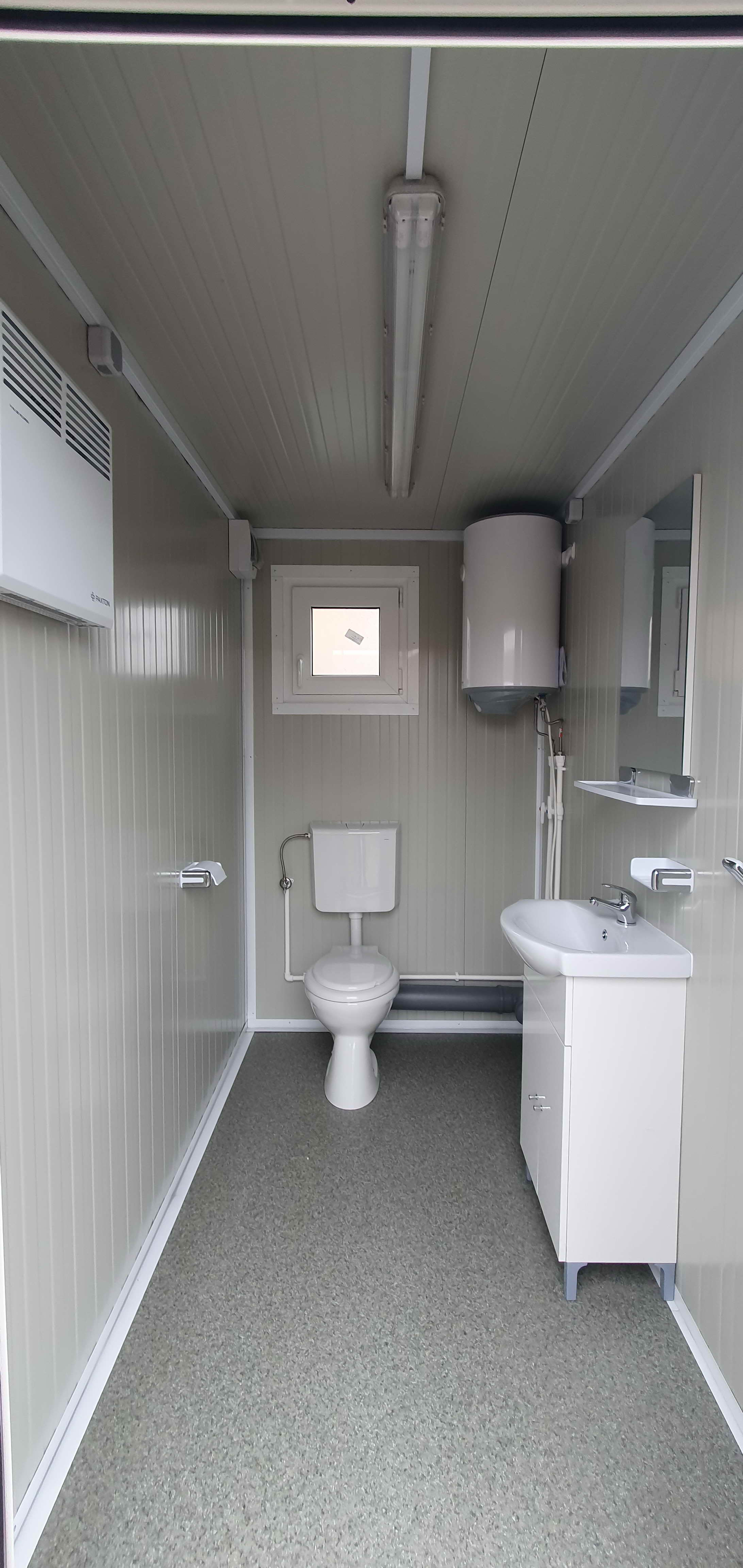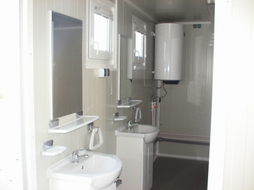 Modelul prezentat este o varianta compacta de container sanitar , asigurand pentru o scoala sau gradinita tot ce are nevoie. Este echipat complet cu obiecte sanitare, boiler electric pentru apa calda, incalzitoare electrice pentru incalzire, vase wc atat standard, cat si vase wc pentru copii de gradinita, mai mici. Are avantajul asigurarii unui mediu curat si igienic, incalzit si care asigura pentru o scoala sau gradinita absolut totul intr-un singur container.