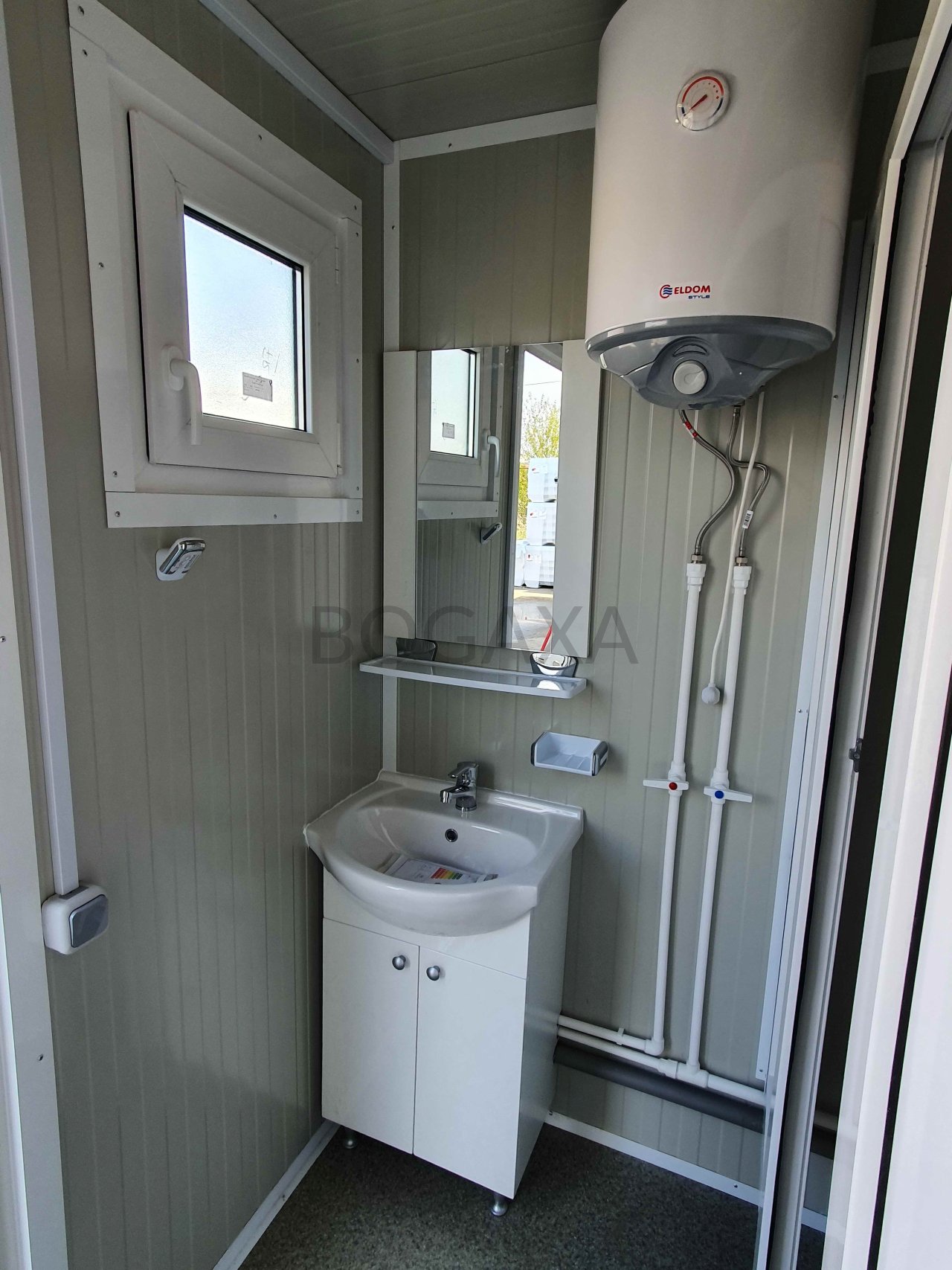 Dotari standard: Usa metalica 900x2000, fereastra rotobasculata 800x1100 - 2 bucati, fereastra de baie 600x600 rotobasculanta, covor PVC de trafic greu, compartimentare pentru dormitor cu usa interioara metalica sau termopan, compartimentare de baie cu usa interioara metalica sau termopan, baie complet echipata (wc+dus+lavoar+boiler 50l, +accesorii - oglinda, etajera, sapuniera, portprosop etc), instalatie electrica standard (tablou general, priza de conexiune, 3 corpuri de iluminat LED 2x18W, 6 prize standard, 3 prize de radiator, aplice si intrerupatoare), preechipare lavoar bucatarie - incluse in pretul afisat!!!.